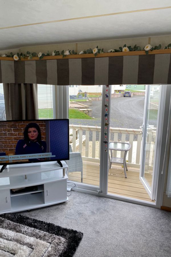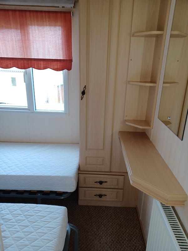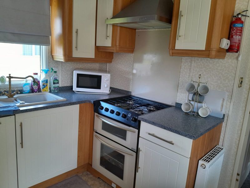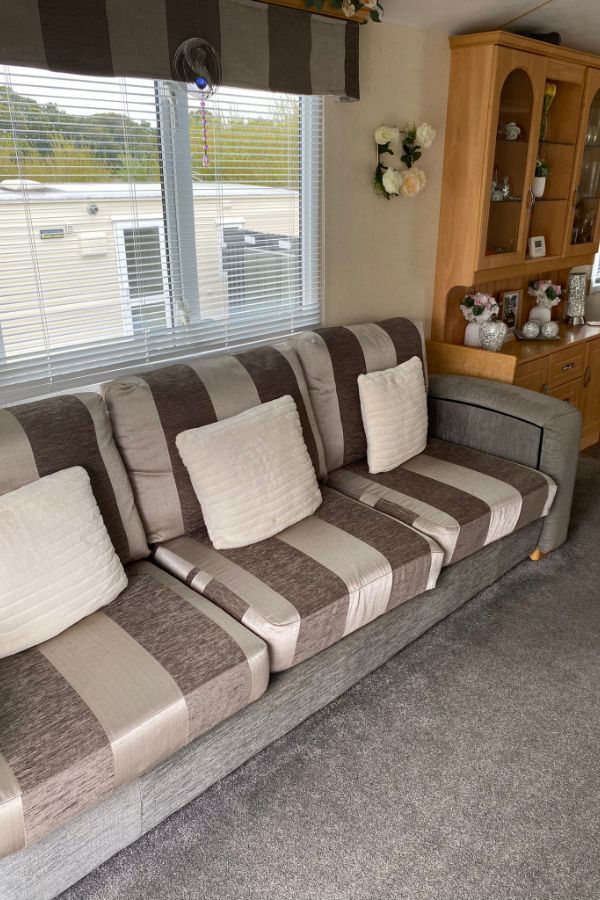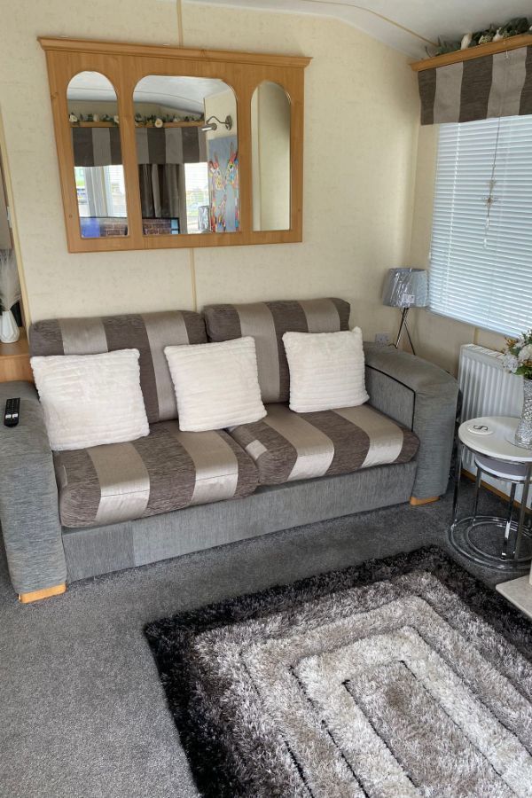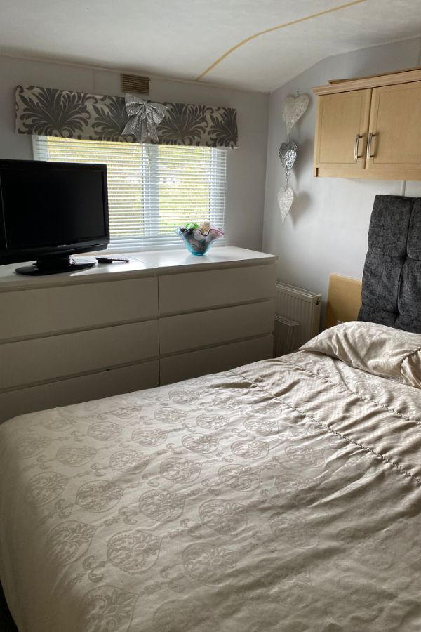Specification: 6 Berth, 1 Double bedroom, 1 twin Bedroom, Pull out double bed in lounge. Central heating. Double glazing. Fridge freezer, microwave, dishwasher, full size washing machine, full size tumble dryer,gas oven and hob, television with sky dish if required. Large bathroom with bath and Boiler fed shower. Furniture included. Security camera inside and out. Lots of lovely ornaments, fixings and extras. Main bedroom and hall updated with plush new carpets.